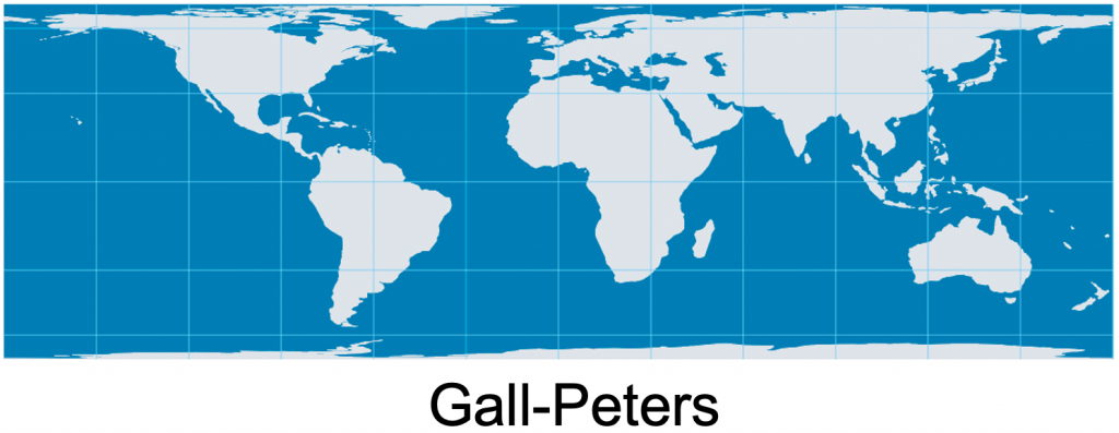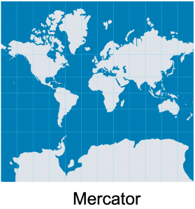 Mais cette projection déforme fortement les surfaces, surtout en s’éloignant de l’équateur. Par exemple, le Groenland y semble aussi grand que l’Afrique, alors qu’il est 14 fois plus petit. Elle donne ainsi une image faussée de l’importance spatiale des régions situées en latitude élevée.