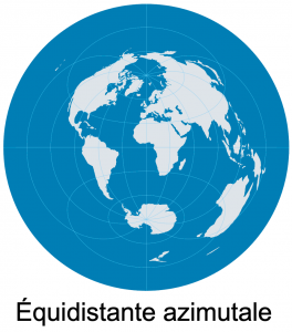 Elle conserve les distances depuis le point central, mais pas entre deux points quelconques sur la carte.