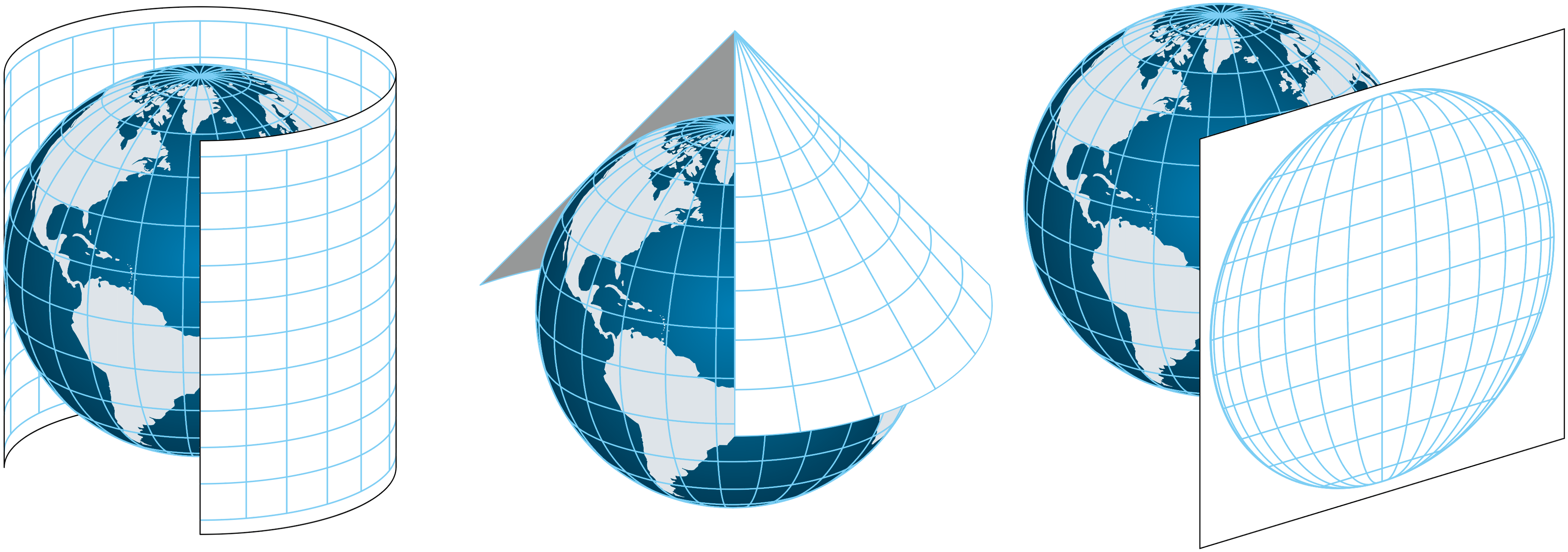 Les projections sont souvent classées selon la surface géométrique utilisée pour « projeter » la Terre :